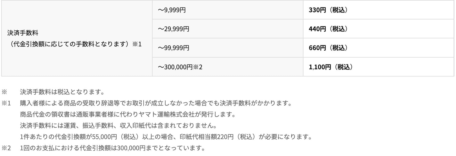 - 1件あたりの代金引換額が55,000円(税込)以上の場合、印紙代相当額220円(税込)が必要になります。