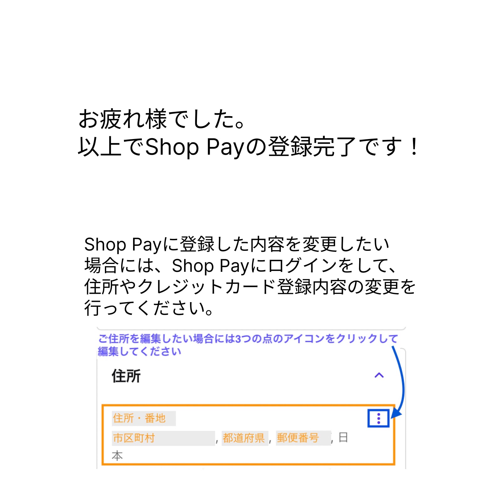 ※Shop Pay登録情報はShop Payにのみ保存されます。弊社にShop Pay登録情報が保存されることはありません。
