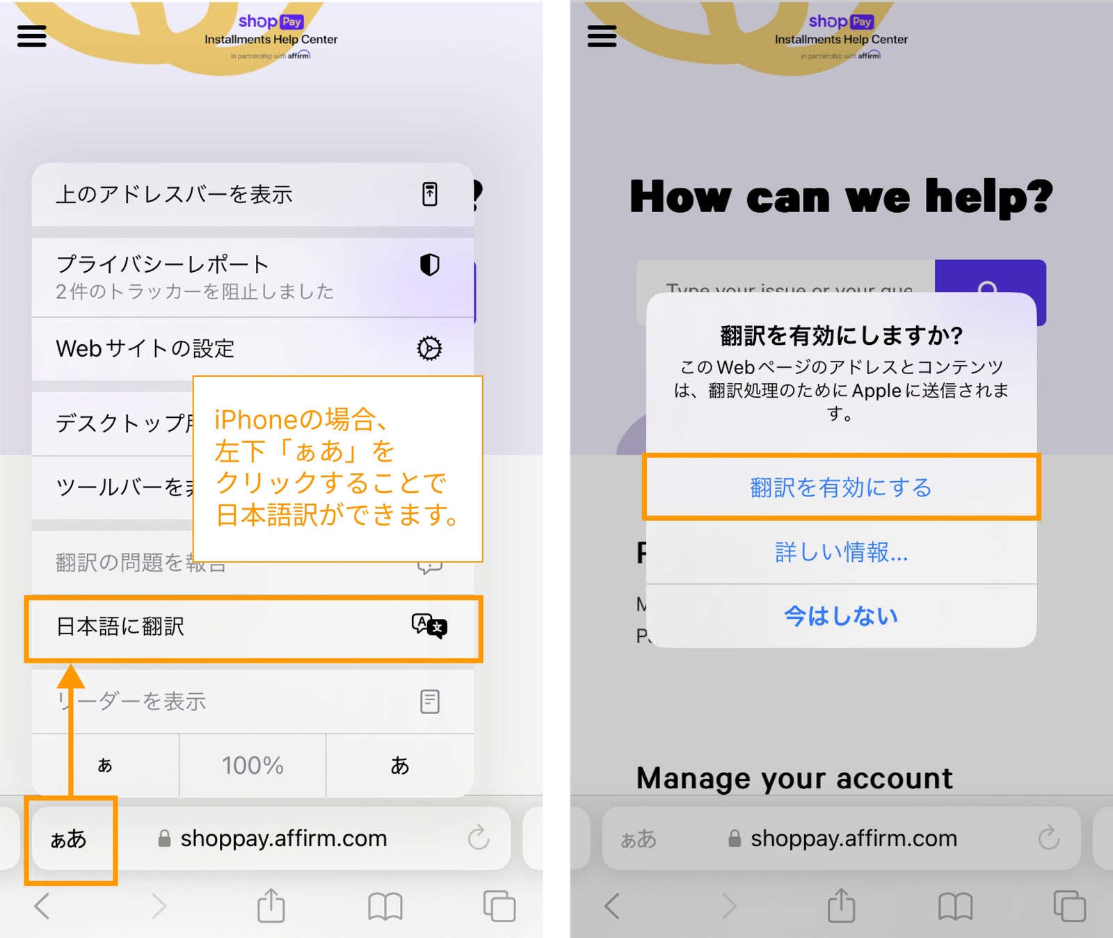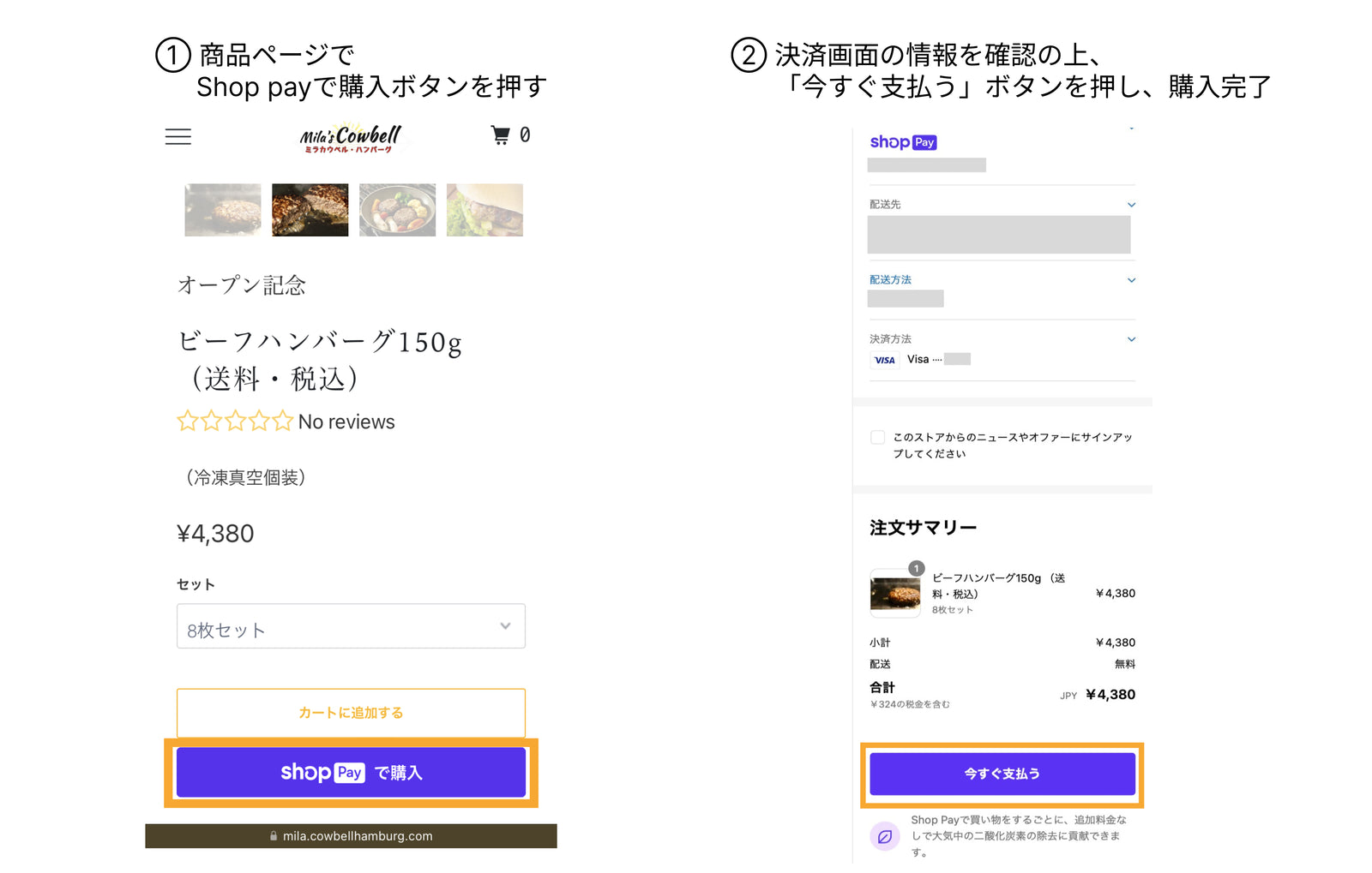 ミラカウベル以外にも、Shop Payを導入しているオンラインストアであれば、どちらでもご利用いただくことができます。